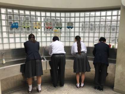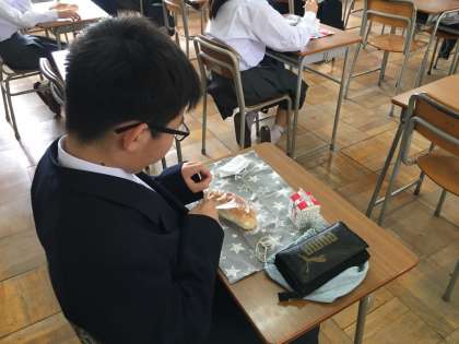 食べた後、前半クラスは下校しました。後半クラスは授業前に給食を行います。