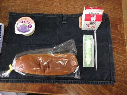 本日の給食は黒糖パン、牛乳、ぶどうゼリーでした。