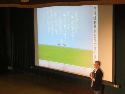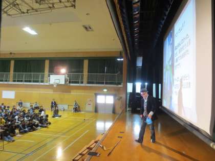 スライドを使い、小学生や中学生にでもわかりやすく、ユーモアを入れながら講演をしていただきました。