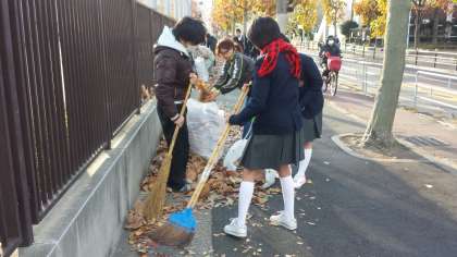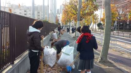 寒い、寒い〜中落ち葉が次々と、そんな中一生懸命に落ち葉を集めました。ご苦労様でした。環境美化に貢献、心もきれいになり最高の日のスタートになりますように。