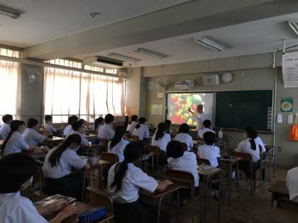 1年生の美術では色合いの授業をしていました。 みんな興味津々に先生の話を聞いていました。