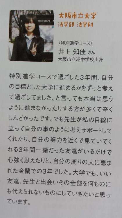 金蘭会高等学校の来春受験用のパンフレットから、本校卒業生を見つれました。