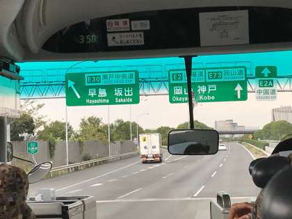 岡山倉敷の散策を終えて、バスは大阪に向かいます。山陽道入りました。