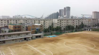 屋上からのグランド風景です。池島小学校の方向にカメラを向けました。
