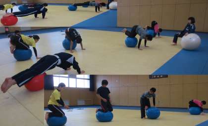 基本的なボールの上でバウンドしたり、左右に動いてみたり…