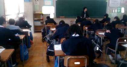 リスニング問題と筆記問題をマークシート形式で行いました。