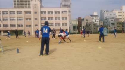 港区にラグビー部がある4つの中学校が集合し、合同練習会を行いました。