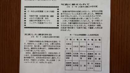 現在3年生の方のメッセージを一読ください。
