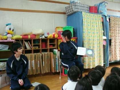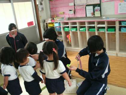 3年生が保育実践へ行ってきました。やさしいお兄さん、お姉さん、頑張れました。