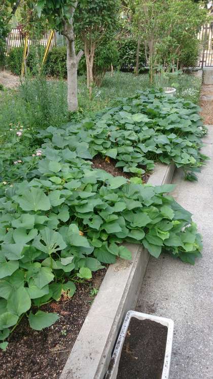 畑の畝が見えなくなるくらい猛暑に負けず、元気いっぱいに伸ばしています!