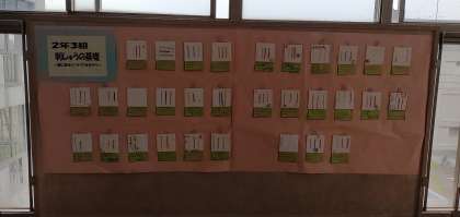 2年生の廊下には、家庭科の授業で作った刺繍の掲示がされています。