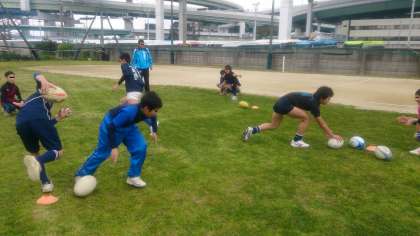 楽しくラグビーをモットーに目標を持った練習をしていただきました。