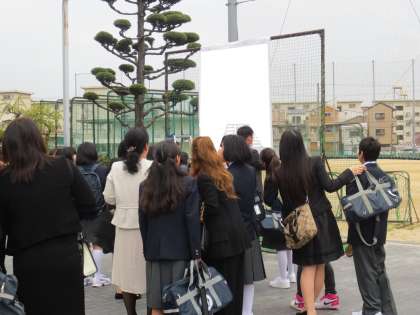 63期生が大きめの標準服を着て正門を元気良く通り登校しました。