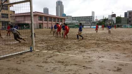 昨晩の大雨でグランドは、ぐちゃぐちゃ状態でした。