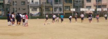 市岡中学校さんのグランドで「市岡中・相生中・港中」の3校合同で練習をしました。