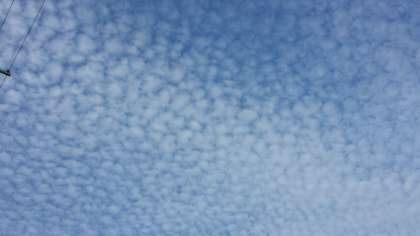 秋の風物詩、午前七時頃上空を見ると「うろこ」「いわし」「さば」雲が見られました。
