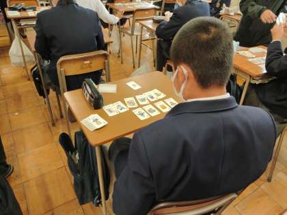 2年生は進路学習の一環で、ヒューマンキャンパスより講師の方に来ていただき、SP トランプを行いました。