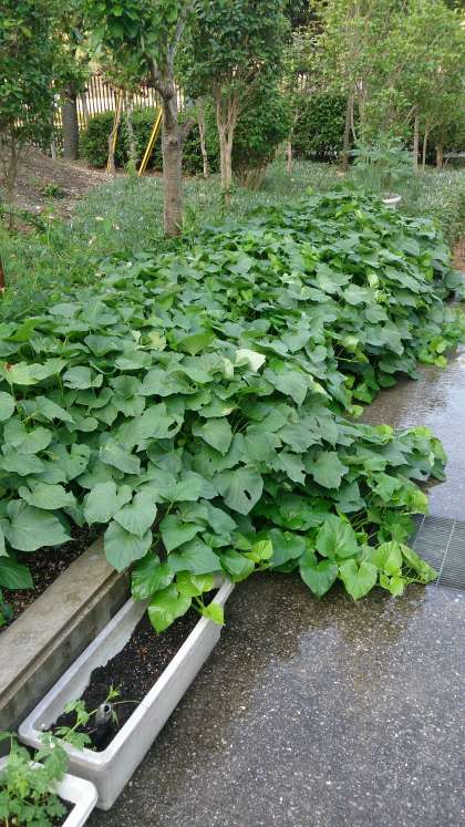 SSCの畑は夏休みもぐんぐんとツルを伸ばしていました。