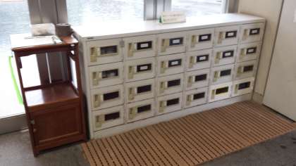 南島原市のヒマワリすくすくと成長してます。担当の野外活動部の皆さんが世話をしてくれています。靴箱が修理改善されました。管理作業員さんありがとうございます。