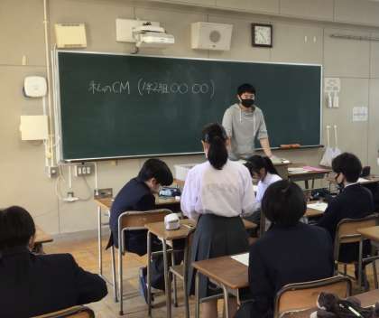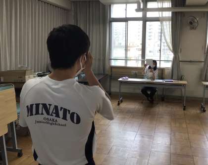 1年生は、まず学活。自己紹介カードを活用して、クラスで発表していました。
