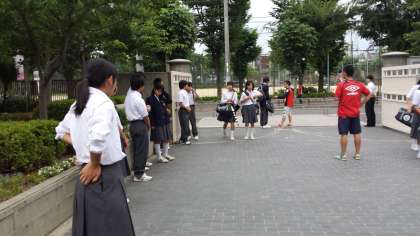 2日前に近畿地方が梅雨入りしました。今日6月5日(金)は曇りで午後から雨模様ですが今日も「おはようございます」と元気いっぱいに登校しています。明日から大阪市中学校春季総合体育大会が開催されます。バドミントン部は、東成体育館で団体戦に優勝をかけて挑みます。バレーボール部は、土曜日午後2時50分に東淀川体育館で決勝トーナメントがあります。ソフトテニス部は、長居庭球場での健闘が楽しみです。どの部も日ごろの成果を発揮してください。楽しく笑顔を忘れなくがんばろう。