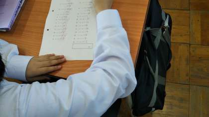 宿題の答え合わせをしています。
