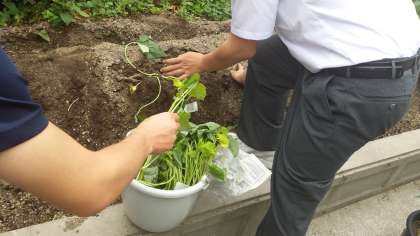 さつまいもはの種はあるのかなあ?種ではなくて弦を植えます。植え方にも気を付けて、実際に挑戦しました。大きなサツマイモができるのが楽しみです。