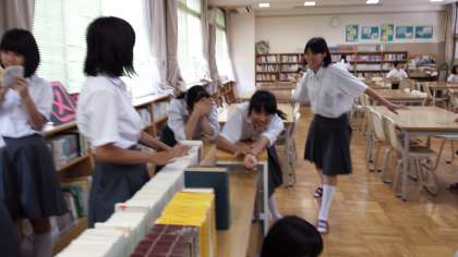 三年生中心にたくさんの生徒が図書館を利用しています。明日6月11日は、学校図書館の日です。読書は心を豊かにします。どんどん利用しよう。