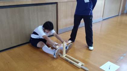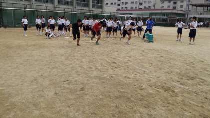 どの種目も集中力が大事です。日頃の体育、部活動と真剣な姿が今日のチャレンジスポーツに反映されます。石田、大島両先生は、陸上競技部顧問です。