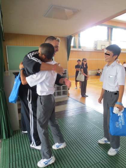 なかには…ジョンさんと抱き合う生徒も!