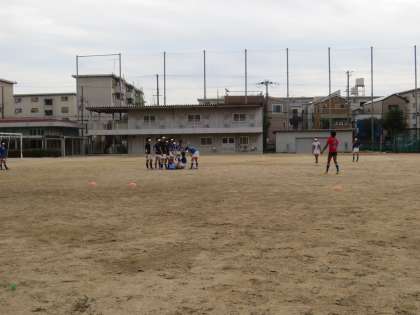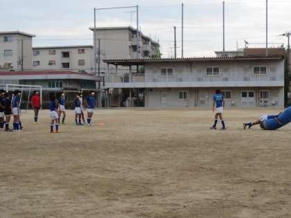 最後の大会ということで、3年生全員がそろい、朝の7時より港中のグランドで最終の確認等をしました。