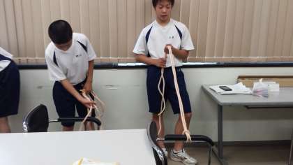ロープの結び方、素早く正確に結ぶこと。素早くとは、一刻を競う出来事に対応しますね。もたもたしていては人の命を救えません。結んでも結び方が甘いとほどけてしまいます。しっかり結んでください。