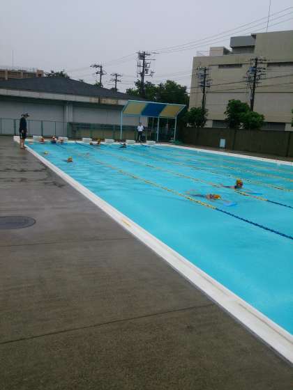 保健体育科の教員はプール授業で研究授業をしました。