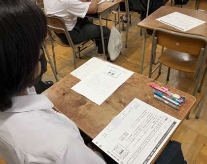 3年生が今後の校内評定範囲に関係するチャレンジテストに臨みました。テスト後には『理科出来た!』『難し過ぎるわ!』と様々な声が生徒たちから聞こえてきました。