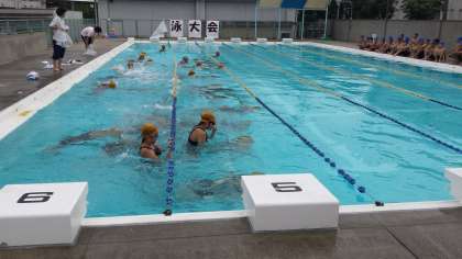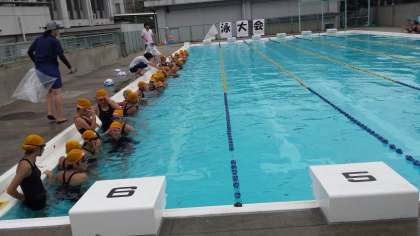 コイン拾いが女子の部から始まりました。天候も他の学年よりも恵まれ、楽しい水泳大会になりました。