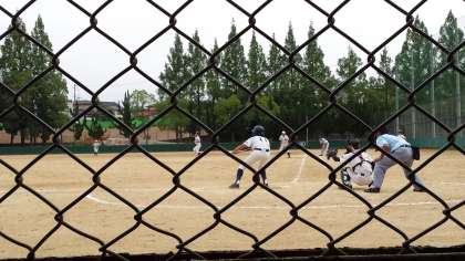 ライト前ヒット、そして全力疾走でホームをねらう。セーフ!