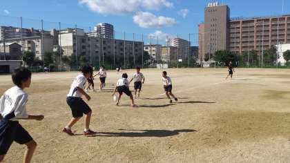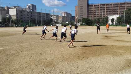雨の日も風の日も暑い日もずっと練習をしています。基本練習に徹するラグビー部。D地区2年生大会18日(土)市岡中学校で行われます。