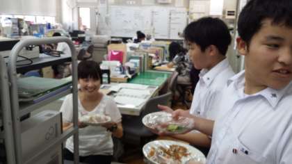 カレーライスをみんなで協力して作りました。職員室の先生方にも少しごちそうになってくださいとありがたい志でした。