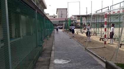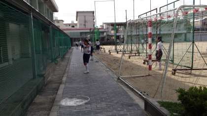 おはようございます。いつも元気いっぱいに挨拶をしてくれます。今日は朝練の人数がいつもより多いいです。グランドが使えなくても体育館の壁とネットにスマッシュの練習がんばっています。