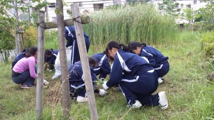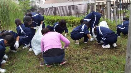 らせん階段に引き続き今度は、ビオトープの草刈りをしました。がまの穂を初めて見た人がほとんどでした。がまの穂の使い方を研究してみましょう。清掃活動もチャンピョンですね。ありがとうございました。