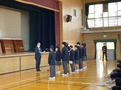 委員を代表し生徒会、各学年2・3組の委員長が認証状を受け取りました。