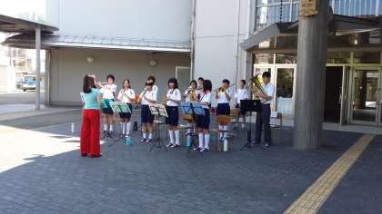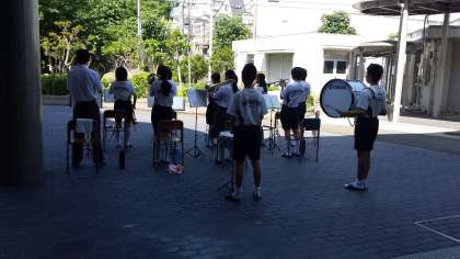 玄関付近でまとまっての練習をしていました。そこにある高校の先生が通られた時、演奏をやめて「おはようございます。」とあいさつを全員がしました。高校の先生も「おはようございます。」と答えました。この様子にとても気持ちがよかったと吹奏楽部の皆さんによろしくお伝えくださいとおっしゃっておられました。さわやかなあいさつは心が打たれますね。