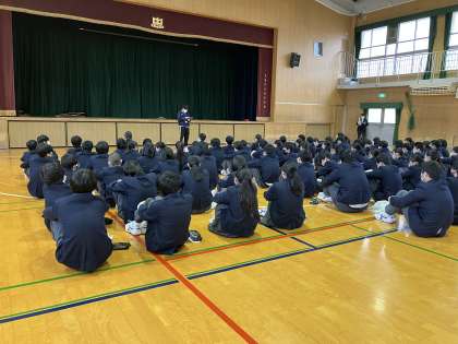 今日3年生は、学年末テスト1日目終了後に体育館で、明日の私学高校出願に向けての事前説明会を実施しました。