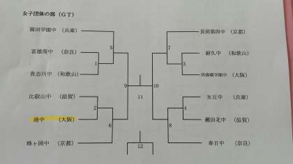 明日5日の団体戦組み合わせ10時30分から滋賀県比叡山中学校とあたります。会場は大和郡山市総合運動公園多目的体育館[金魚スクエア]です。パワー全開最高の思い出をつくろう。