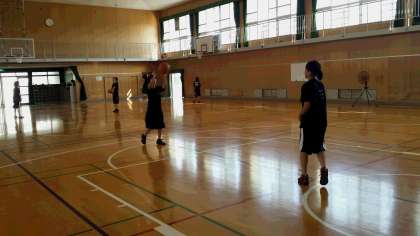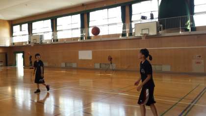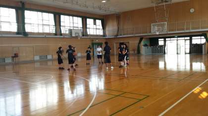 体育館も酷暑ですが、がんばっています。相手のやりたいことを封じ込める練習も大切ですね。がんばろう。