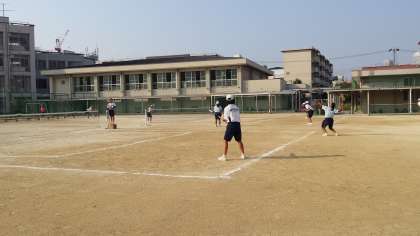 一番日焼けしている部活動です。朝からずっと夕方まで練習一筋、成果はきっと素晴らしいものとなります。熱中症対策も万全でした。