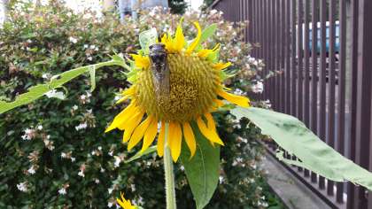 ひまわりに蝉がなぜかなあ… 猛暑、酷暑部活動では熱中症対策万全にしていきましょう。バドミントン部、本日近畿大会初日健闘を祈ります。