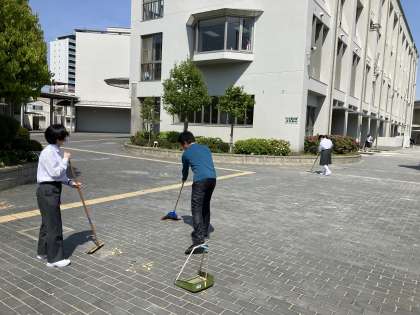 入学式を明日に控え、校舎周りの清掃や式場内の準備を新2年生が行ってくれました。