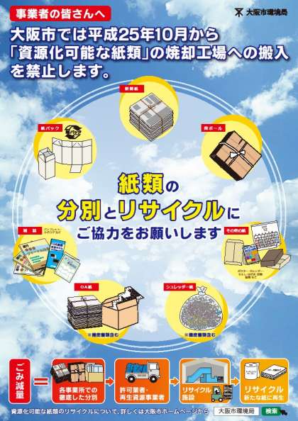 また、学校ような事業所等から焼却工場への資源化可能な「紙類」の搬入を禁止することにもなりました。