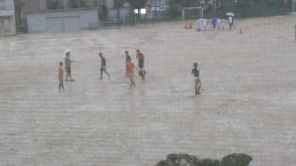 ラグビー部、サッカー部、野球部は放課後雨の中で練習をしました。大会の期日は決まっています。雨が降っても期日は待ってくれない。思うように練習ができないけど工夫をして練習に励みました。何を考えて雨の中で練習をしているのだろうか。行動力に拍手を送ります。